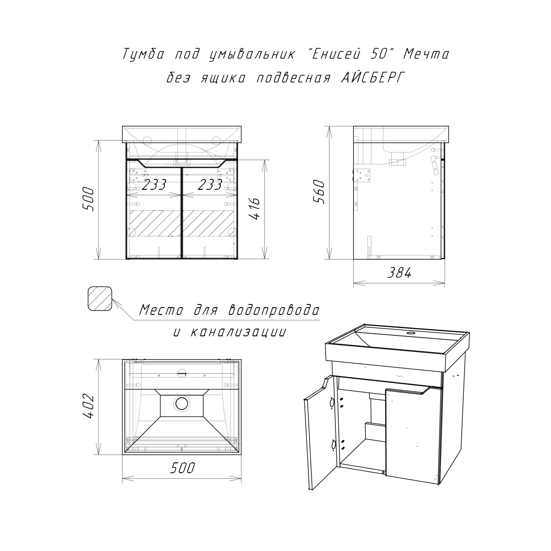 Тумба под умывальник Енисей 50 Мечта без ящика подвесная Айсберг DM2302T / DOMINO купить по цене 66 690 ₸ тг в Казахстане | Amata